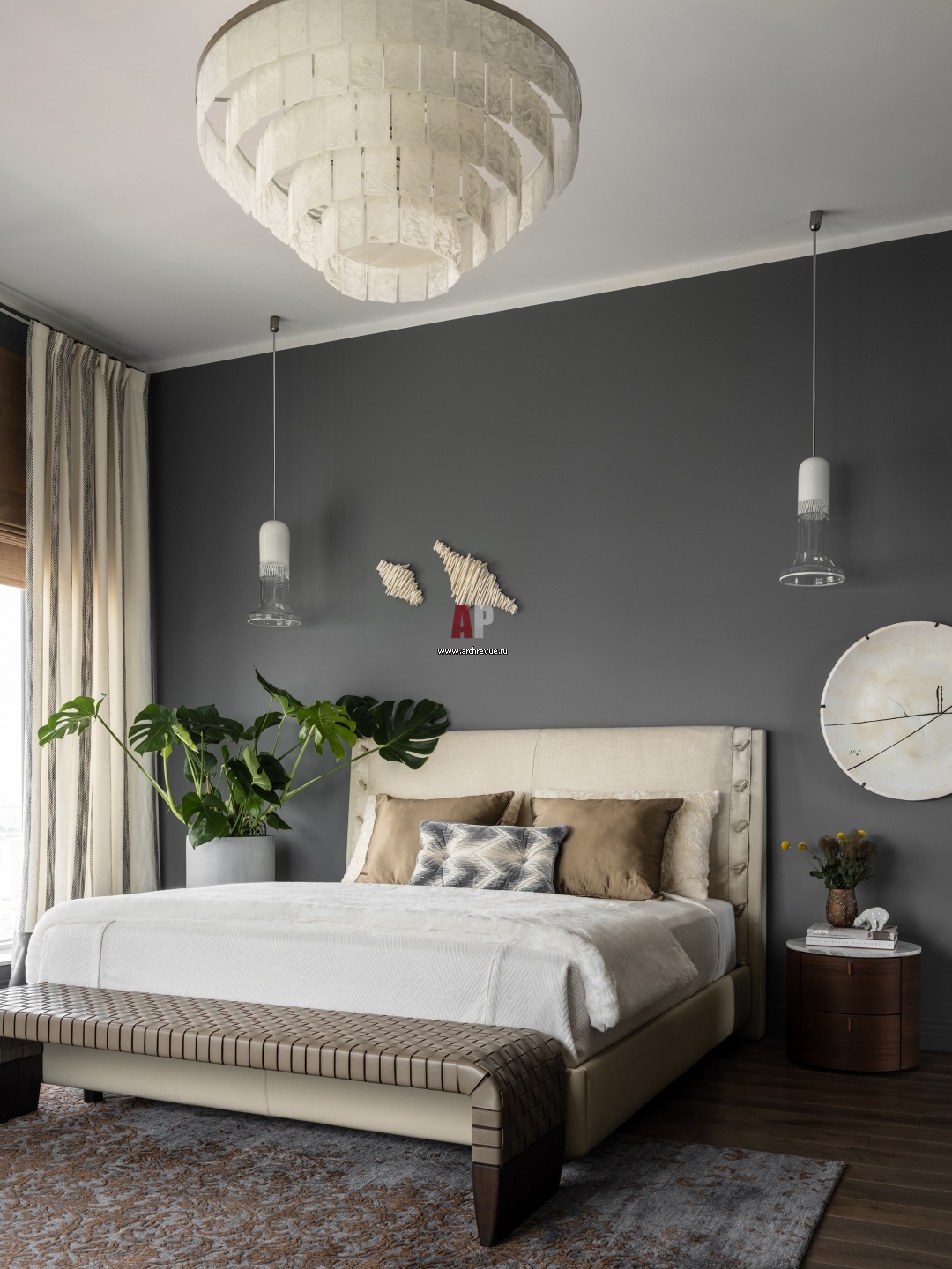 Фото интерьера спальни пентхауса в стиле фьюжн