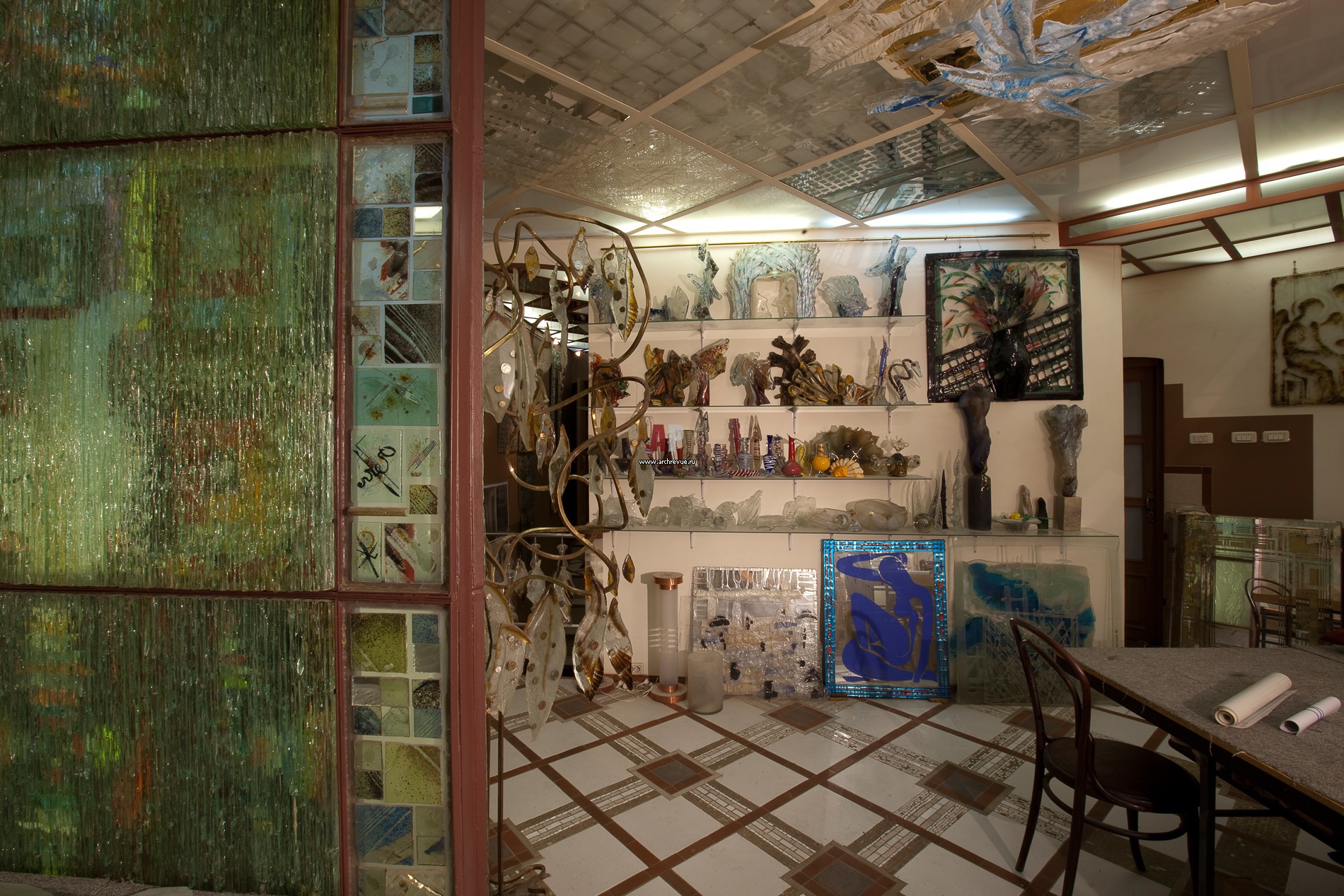 Полы нижнего этажа офиса выложены плиткой, поставщик BARS RED. Стены выкрашены краской Tikkurila нейтрального теплого оттенка.