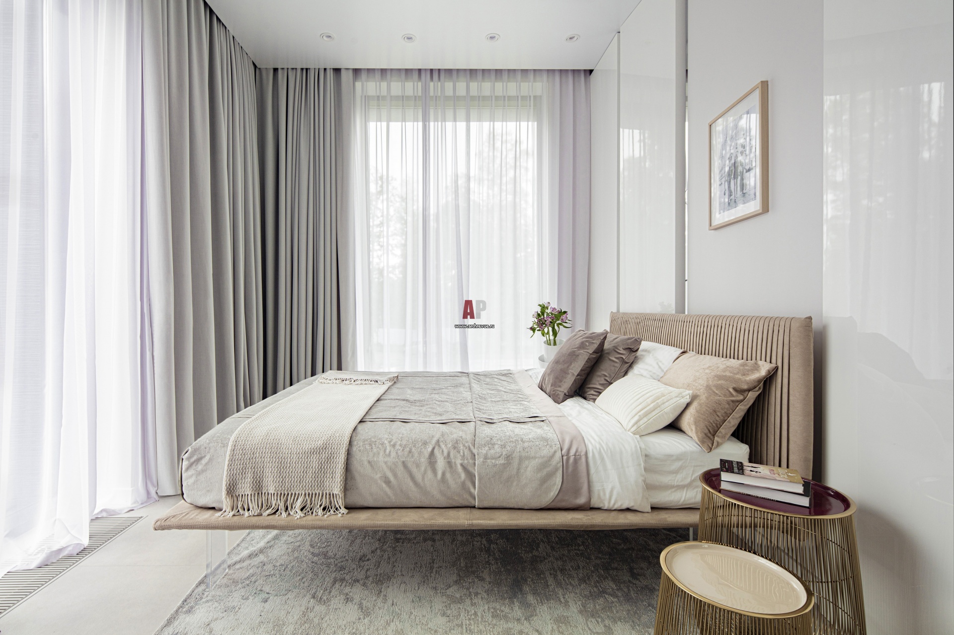 Комната старшей дочери расположена на первом этаже. Она оформлена в комфортной европейской стилистике. Кровать с прозрачными ножками, Lago. Прикроватные столики, Cote Table.
