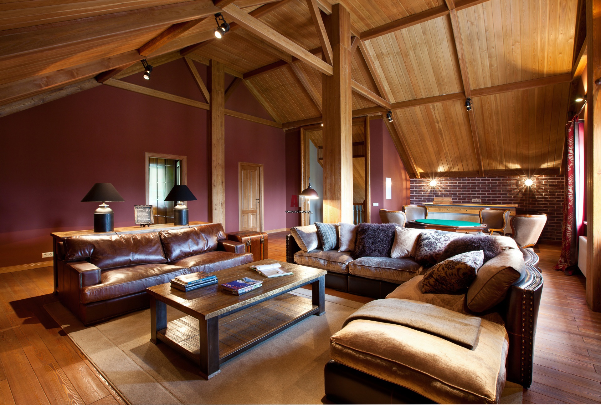 Фото интерьера зоны отдыха выполнена в стилистике английского клуба. Стена за баром выложена кирпичом. Кожаные диваны, Hooker.
