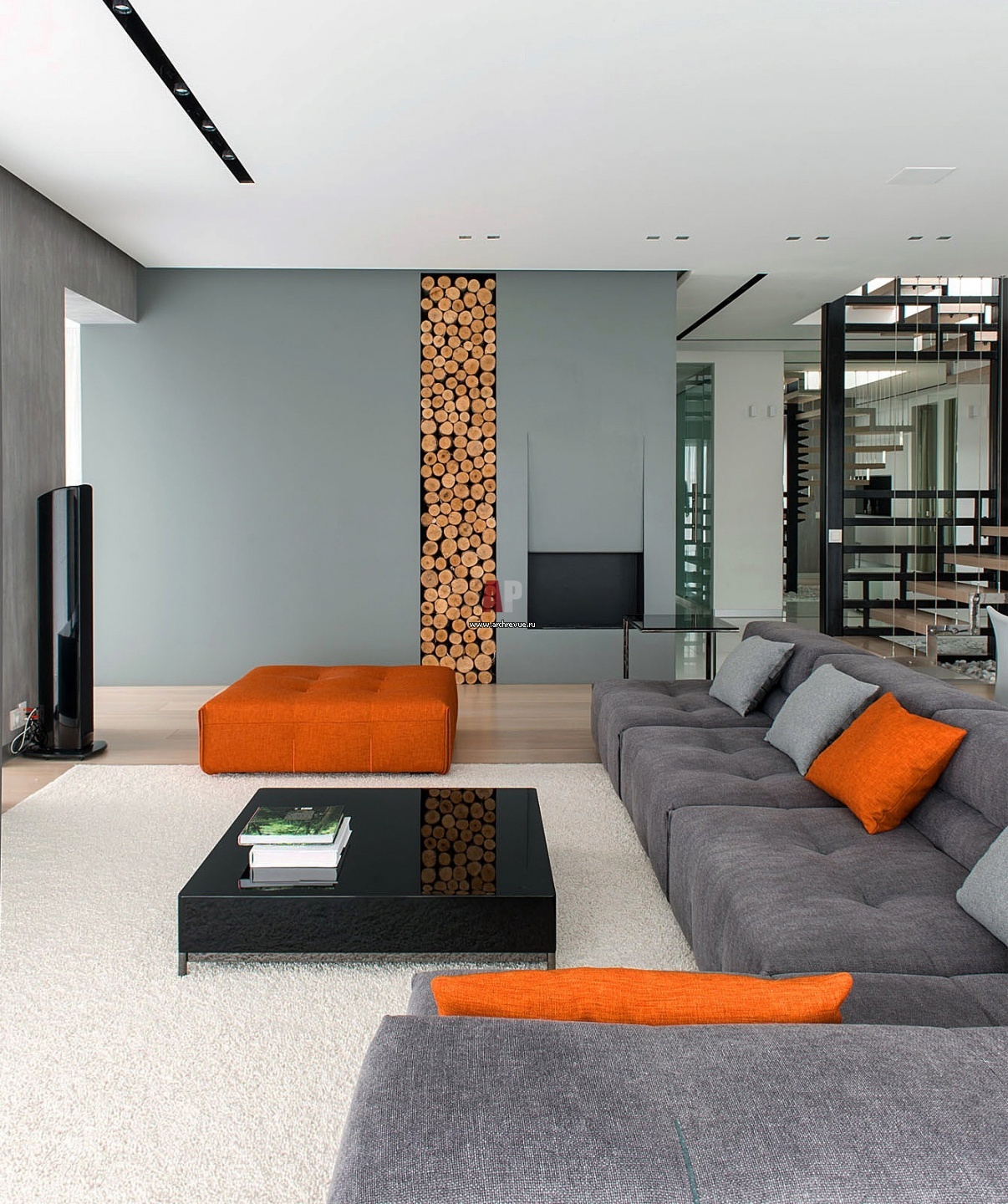 Фото интерьера гостиной пентхауса в стиле минимализм