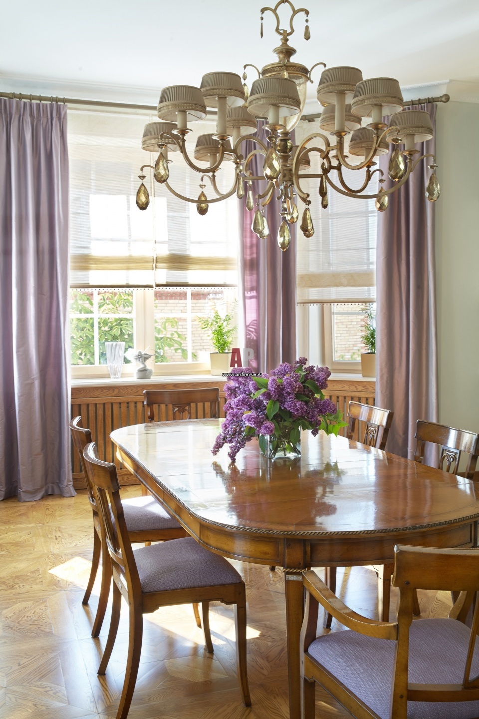 Неоклассическая столовая группа в эркере. Обеденный стол, стулья, Bizzotto.