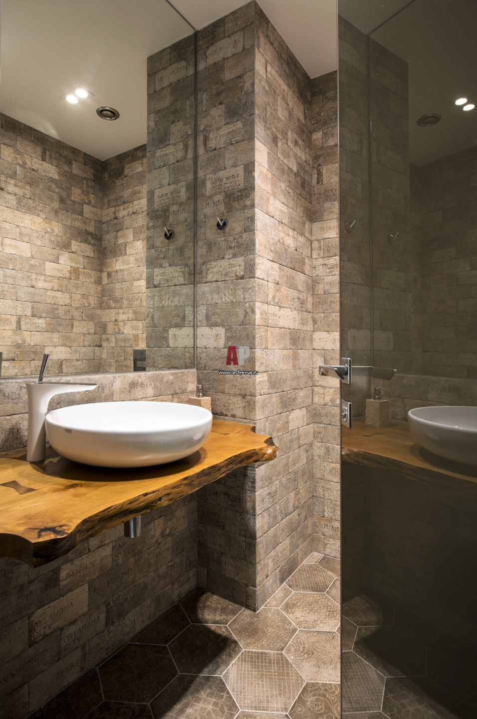 Интерьер гостевого санузла на первом этаже мужской квартиры-студии.