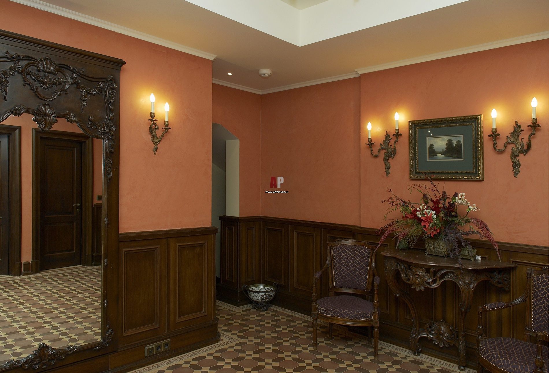 Прихожая с великолепными деревянными панелями, изготовление компания «Маклюра», выполнена в традициях оформления английских особняков.