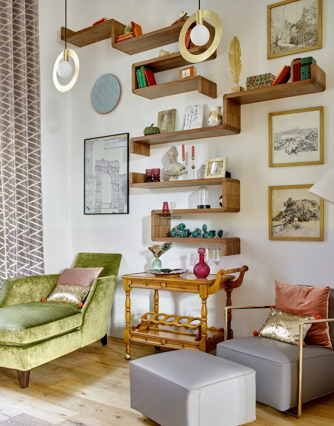 Зона отдыха с кушеткой на кухне. Кушетки для отдыха, Flexform. Потолочные светильники из супрематической коллекции, Wishnya.