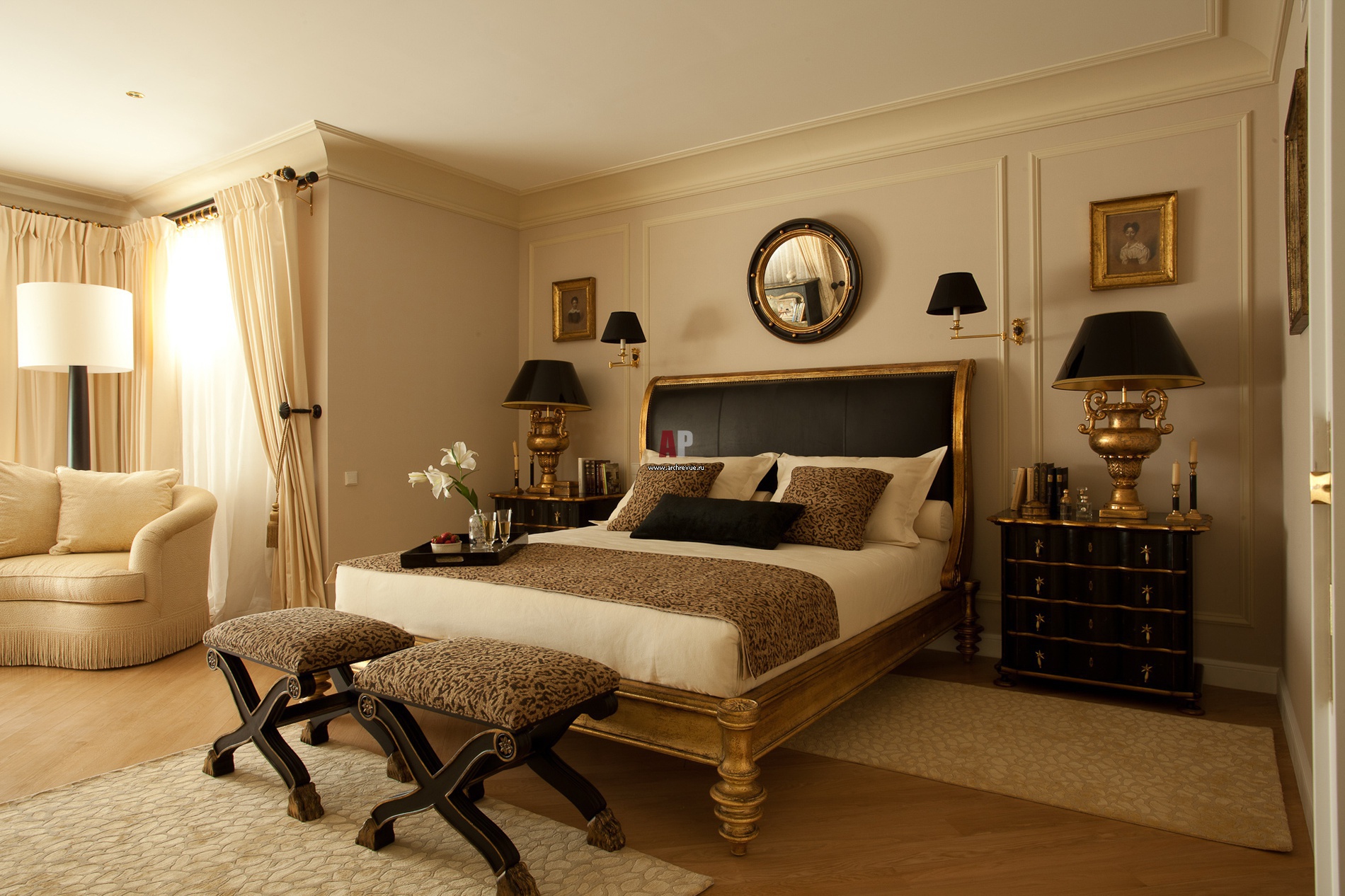 Массивная американская кровать Century Furniture стала ключом к поиску интерьерного решения квартиры. В очертаниях и отделках кровати (кожаное изголовье, патинированное дерево, матовое золото) прослеживаются черты стиля ампир.