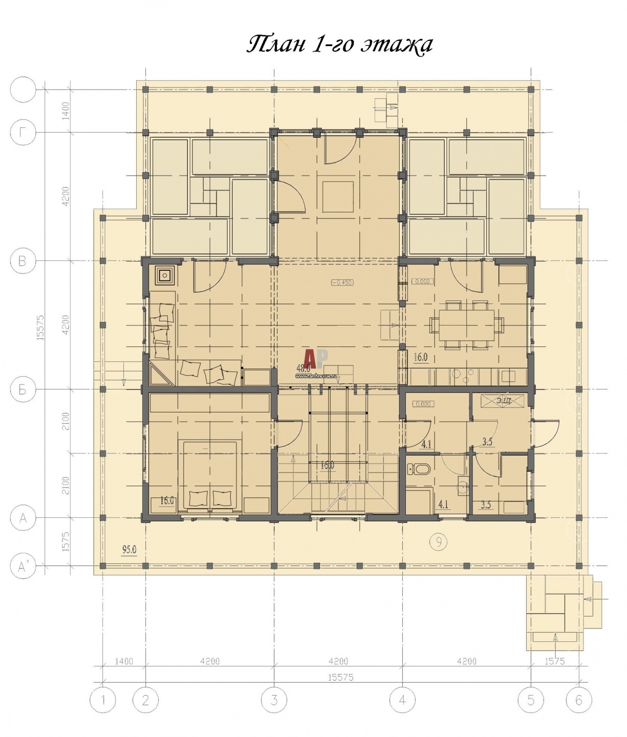 План первого этажа двухэтажного гостевого дома в усадьбе.