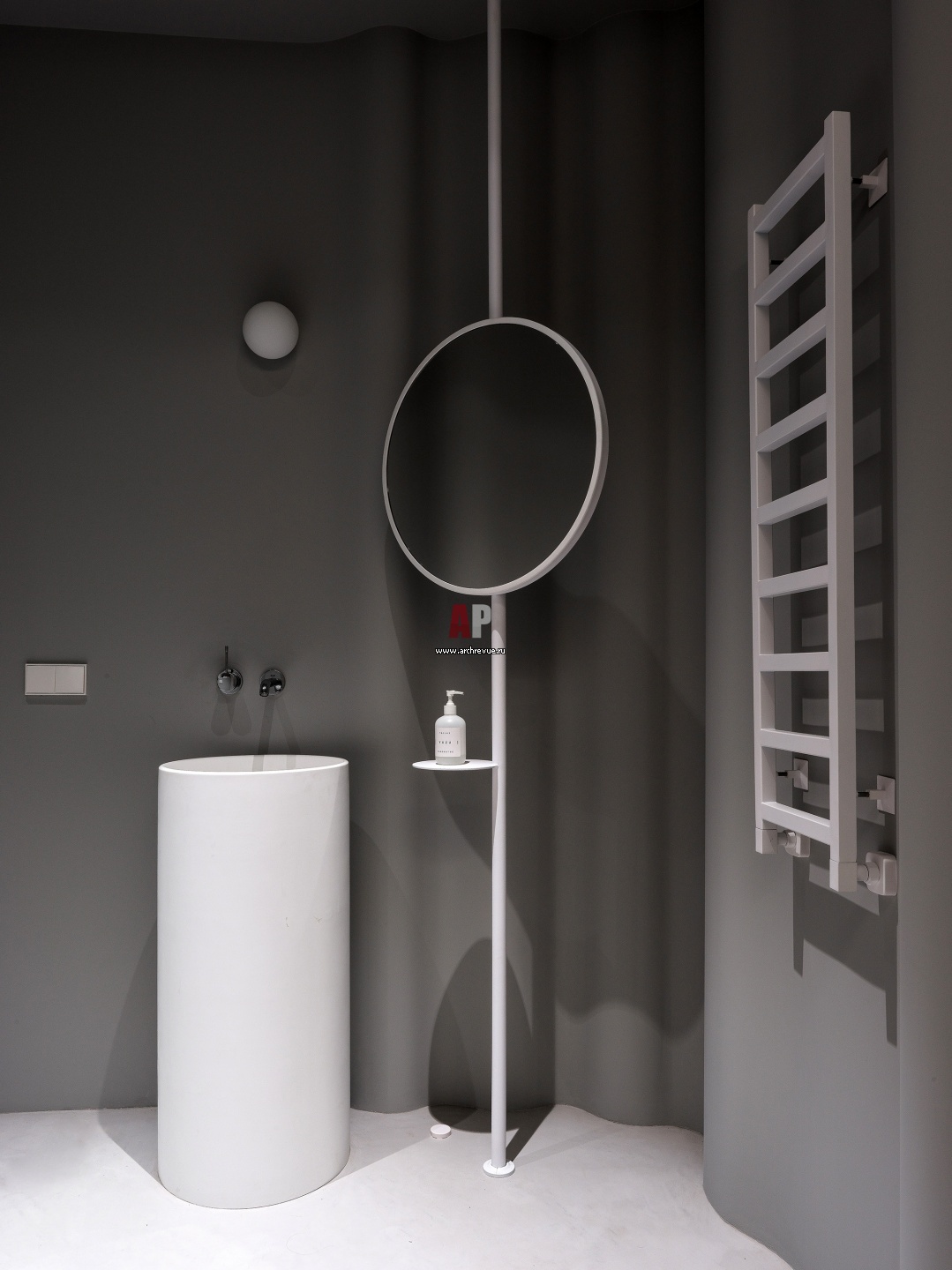 Минималистский санузел в цокольном этаже.