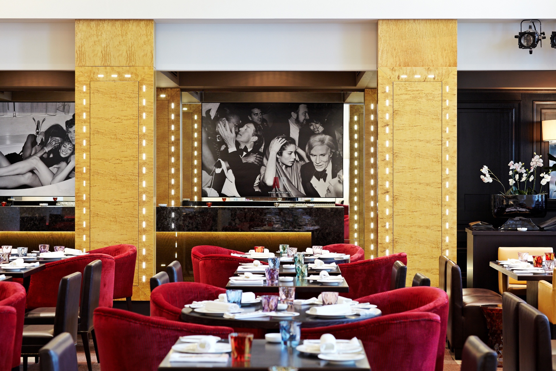 Барная зона выделена колоннами, обшитыми панелями из карельской березы. Благодаря перфорации и точечной подсветке колоны выглядят как простроченная на швейной машинке ткань. Изготовитель «Ольха-Декор».
