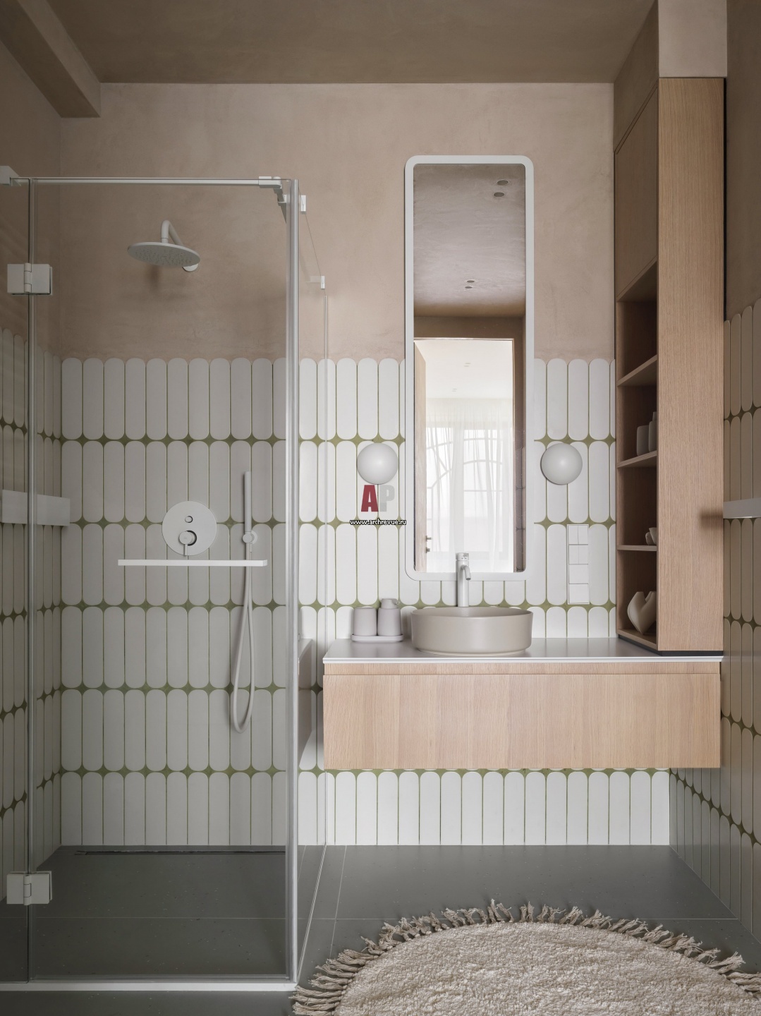 Один из детских санузлов. Керамогранит, Mutina и Wow. Сантехника, Ceramica Cielo.