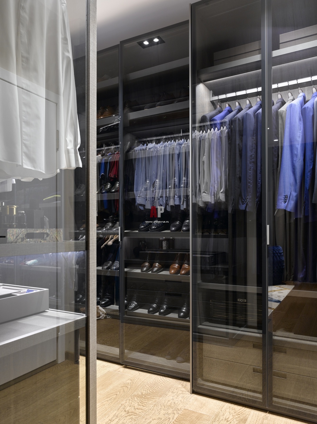 Фото интерьера гардеробной квартиры в современном стиле