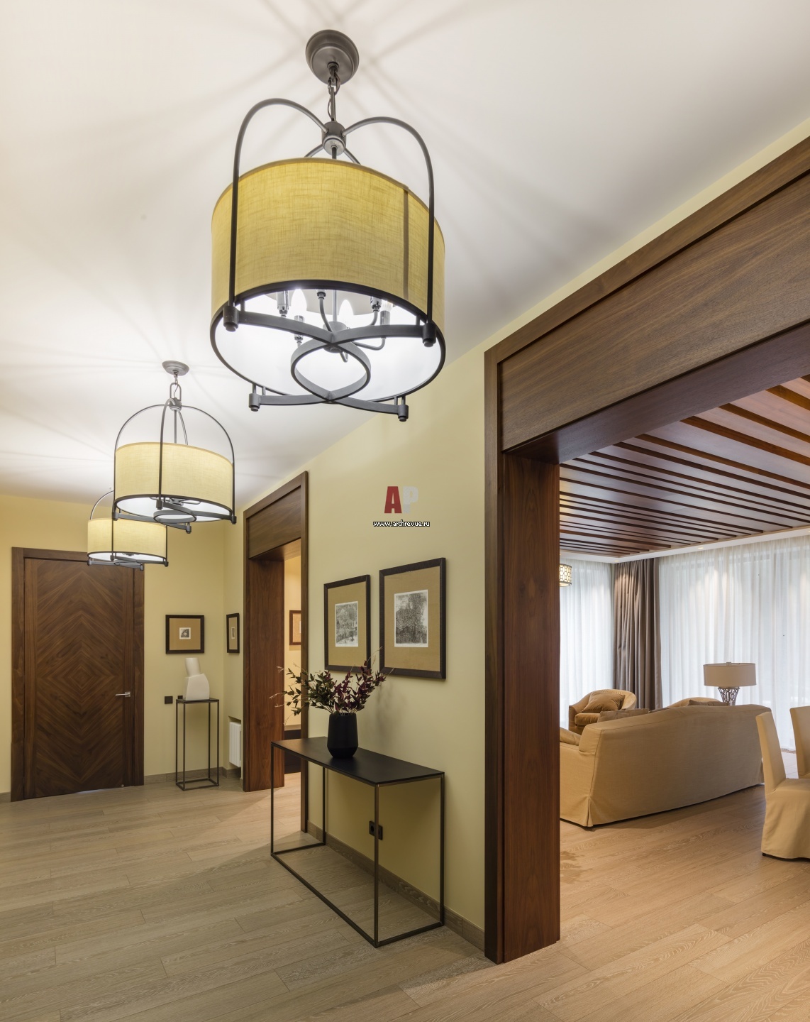 Дверные проемы архитекторы увеличили, порталы и двери выполнили из шпона ореха. Светильники, Fine Art Lamps.
