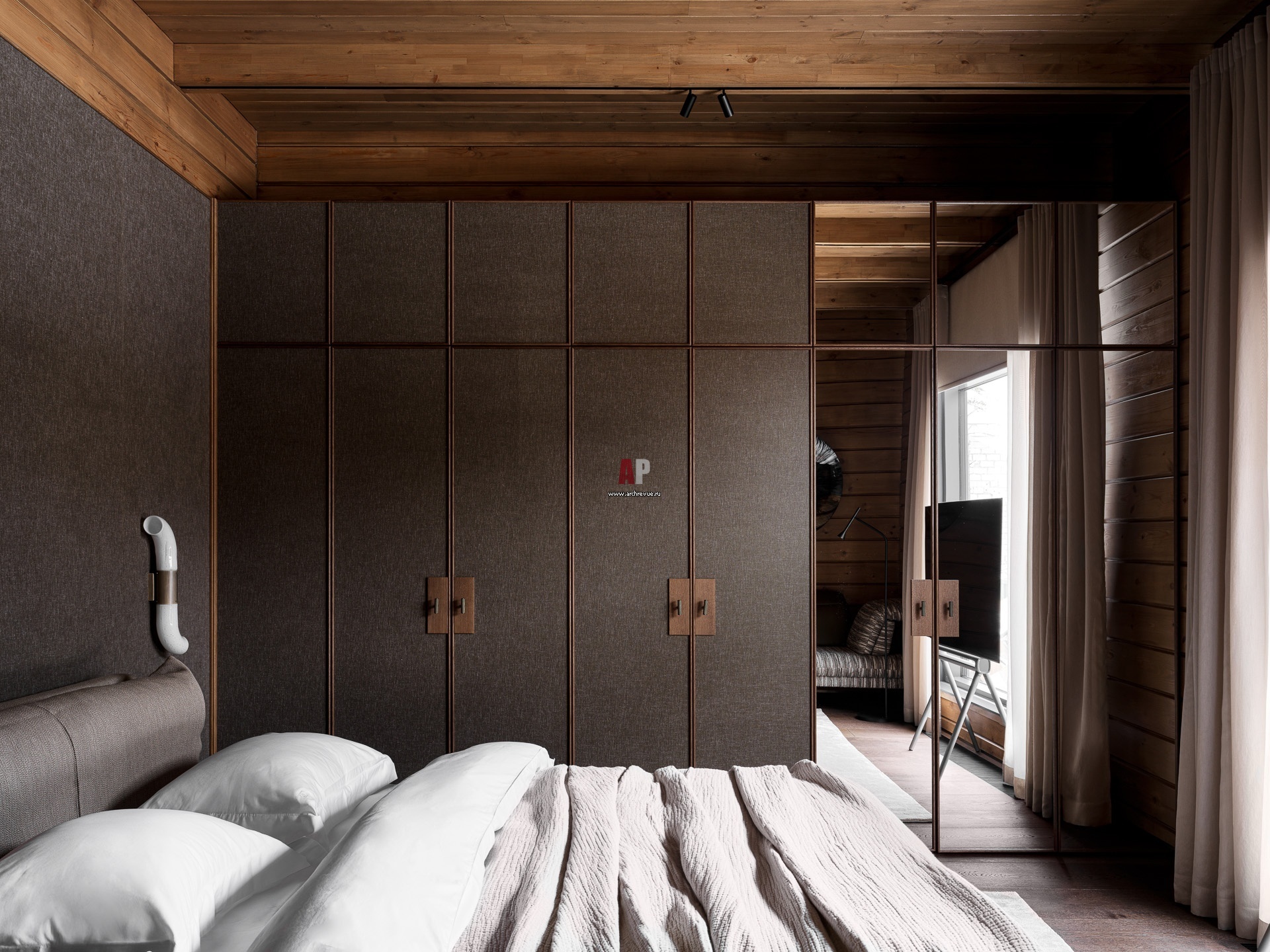 Дом выходного дня с камерным характером. Гостевая спальня. Кровать, DiTre Italia. Столики прикроватные, Sancal.