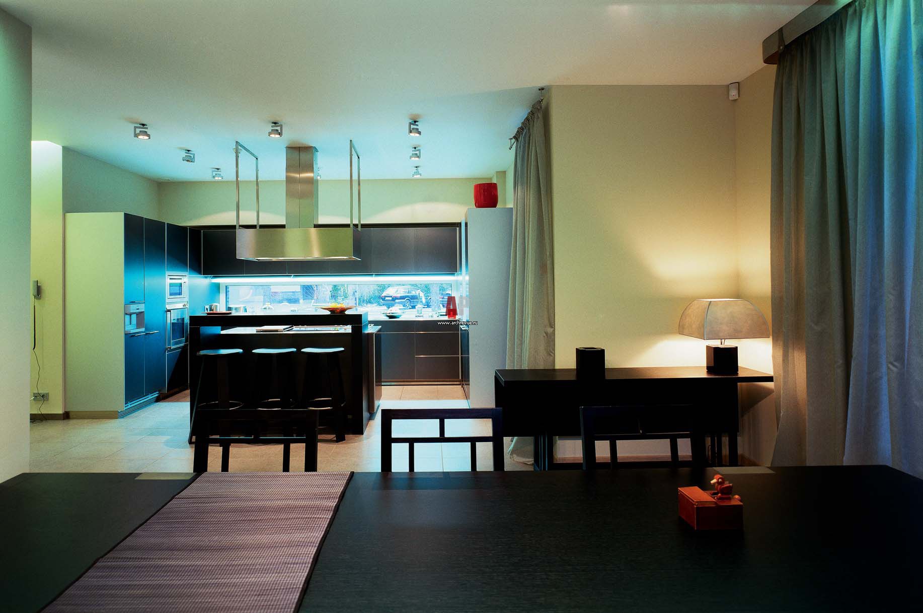 В меблировке дома предпочтение отдано высокотехнологичным предметам. Так, кухня обставлена мебелью Bulthaup, поставщик ITG.