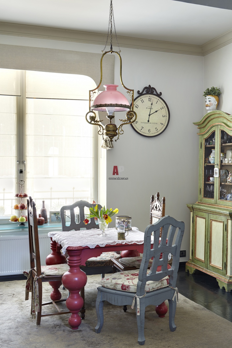 Зона для завтраков на кухне. Состаренная мебель придает уют.