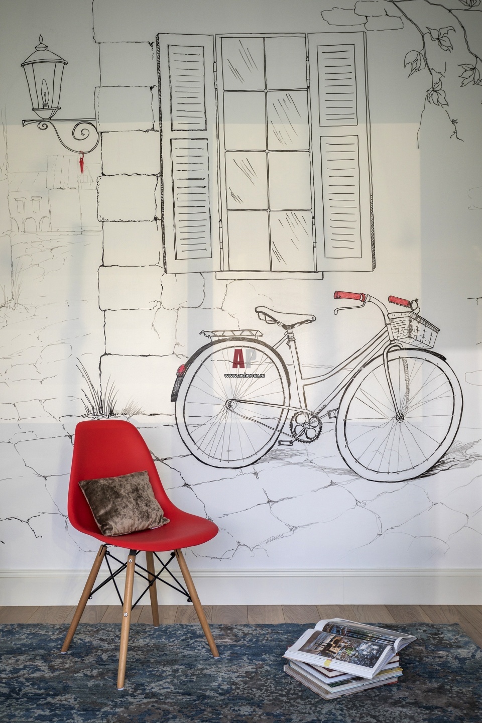 В детской использована маркерно-магнитная краска SketchPaint белого цвета. Клинкерный кирпич загрунтован и покрашен в белый цвет.