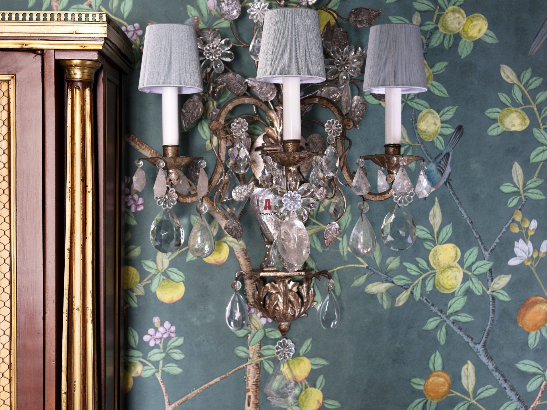 В основу замысла интерьера квартиры легли винтажные обои 1950-х годов от De Gournay ручной росписи в китайском стиле.