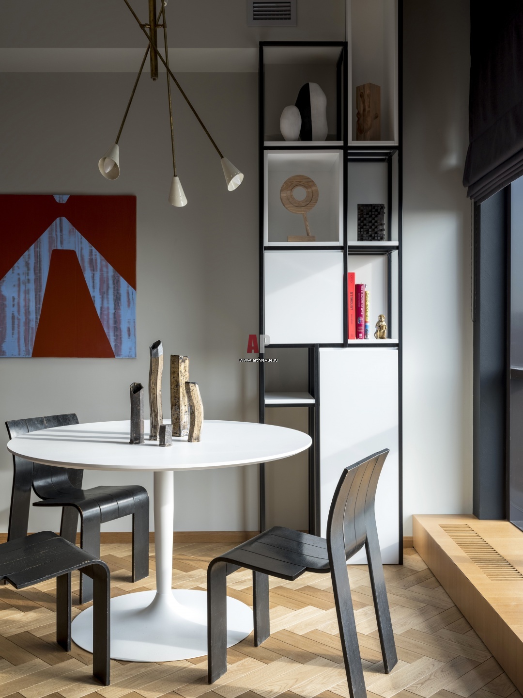 Строгий интерьер квартиры с отсылками к Ле Корбюзье и Питу Мондриану