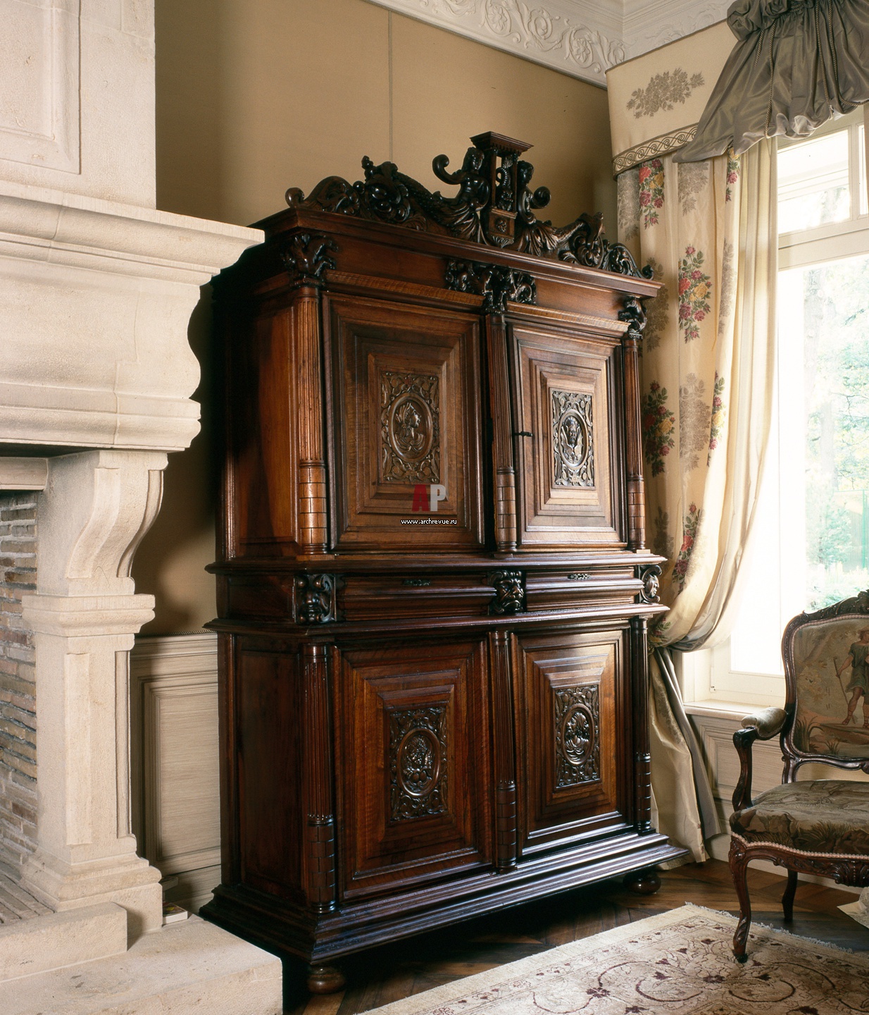 Украшение гостиной – флорентийский буфет начала XVII века – вещь редкая даже для своего времени. Объемная резьба на дверцах изображает аллегории континентов.