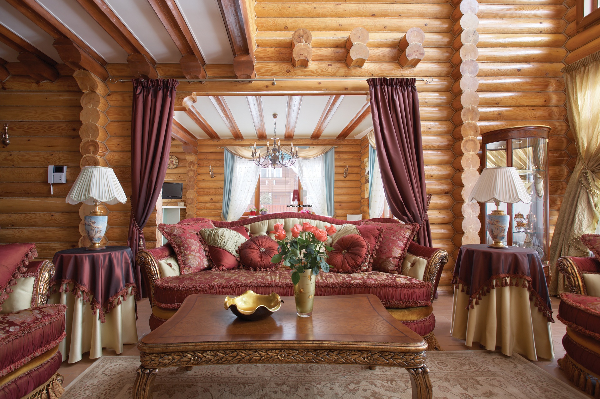 Меблировка гостиной в деревянном доме в стиле парадной классики. Диваны, Provasi.