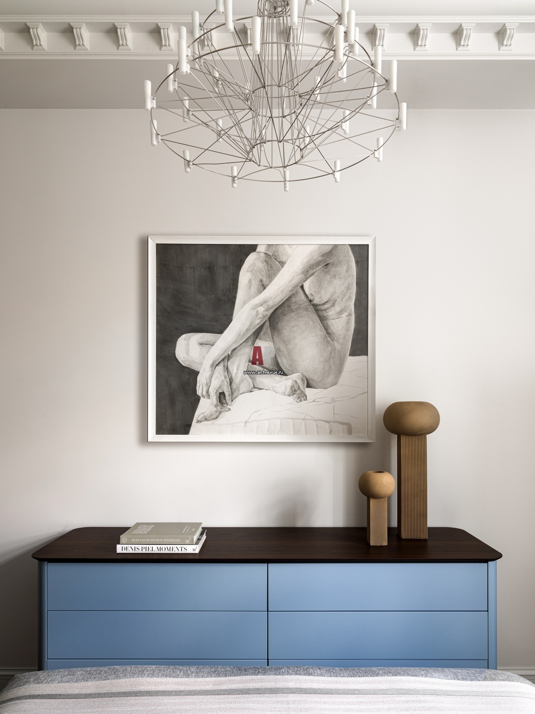 Гостевая. Комод, Roche Bobois. Люстра, MOOOI. Картина «Треснувший лед» Екатерины Лысак.