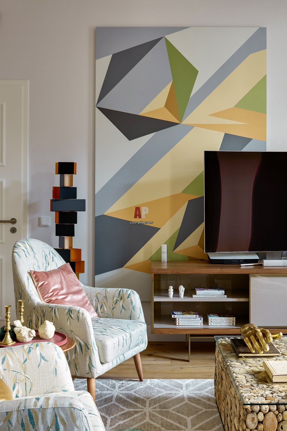 Абстрактная роспись двух полотен за ТВ – работа Алексея Kio.