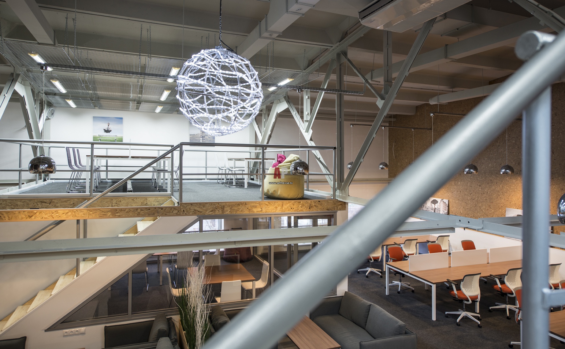 Круглый светильник сделан из четырех гимнастических алюминиевых обруча, 20 метров светодиодной ленты и металлической цепи. Из обручей сделан каркас шара, на него намотаны лента и цепь.