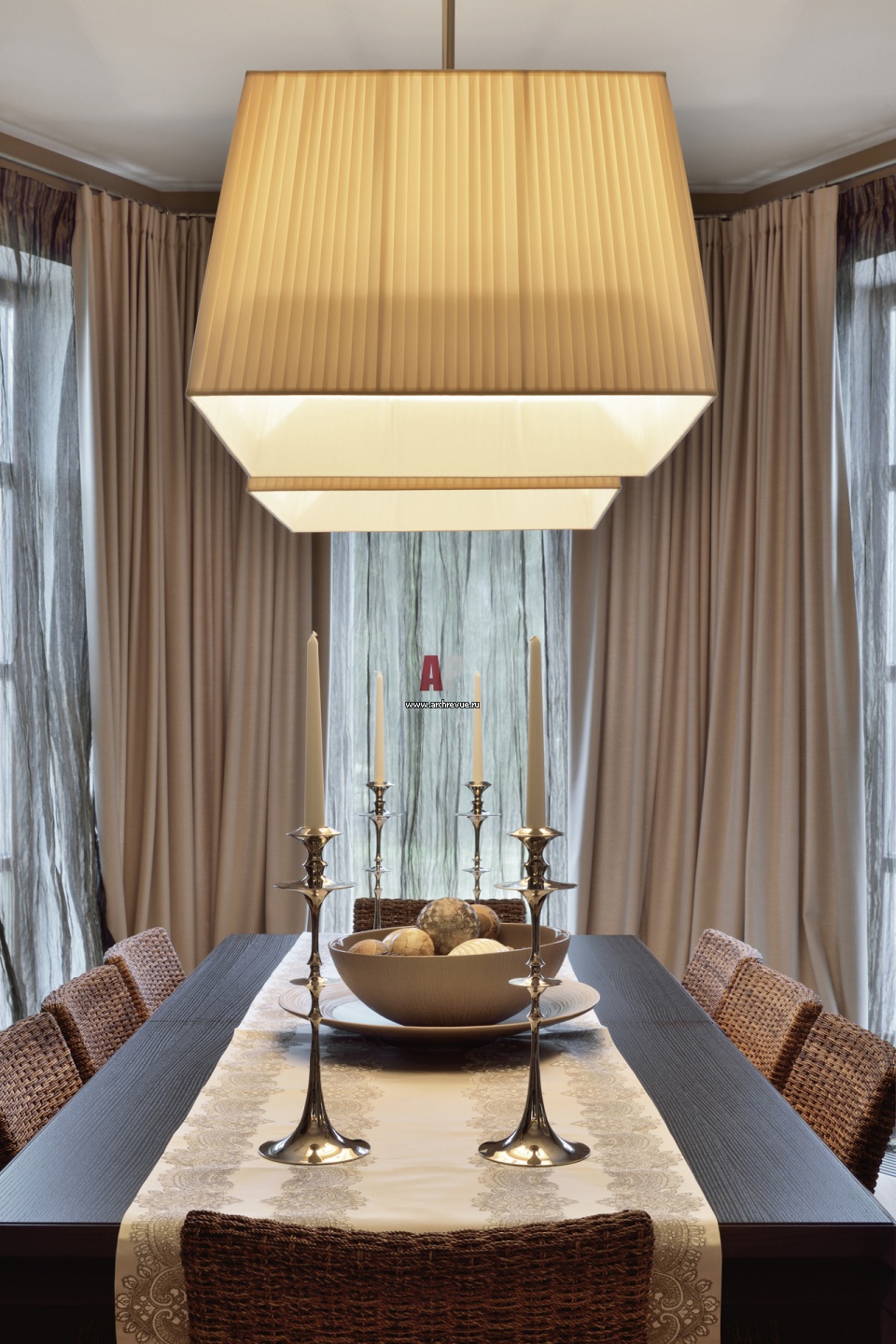 Дом выглядит уютным благодаря светильникам с тканевыми абажурами и текстилю в оформлении окон.