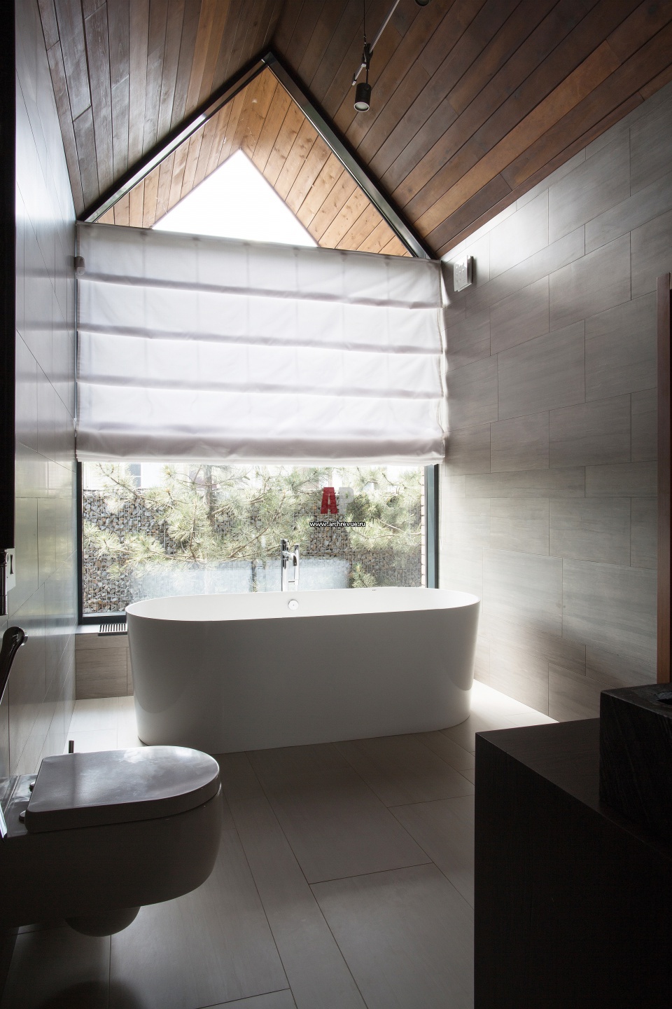 Ванная комната с отдельно стоящей ванной у окна. Сантехника Duravit, Villeroy & Boch, Hansgrohe.