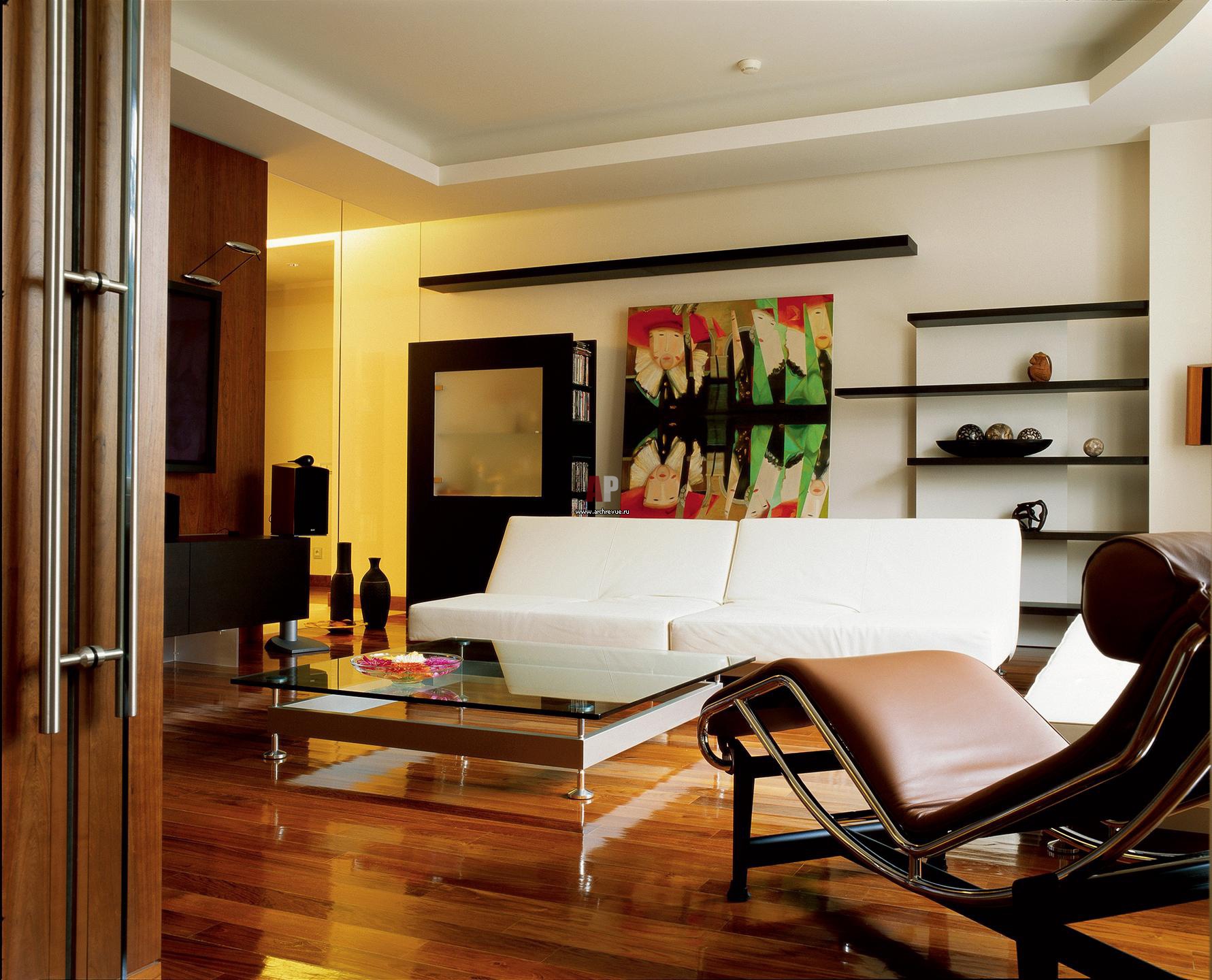 Ядро гостиной – уютная мягкая группа и легендарное кресло Ле Корбюзье, поставщик «Флэт-интерьеры». На одной из стен – полотно современной художницы, на другой – плазменный экран.