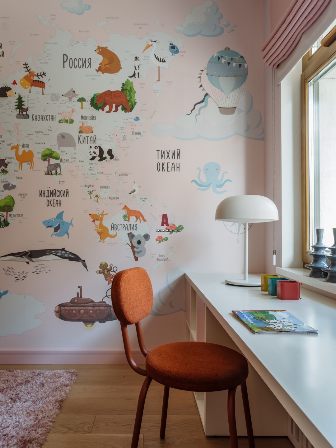 Интерьер детской. Интерактивные обои с изображением географической карты мира, Ko'Za Home.