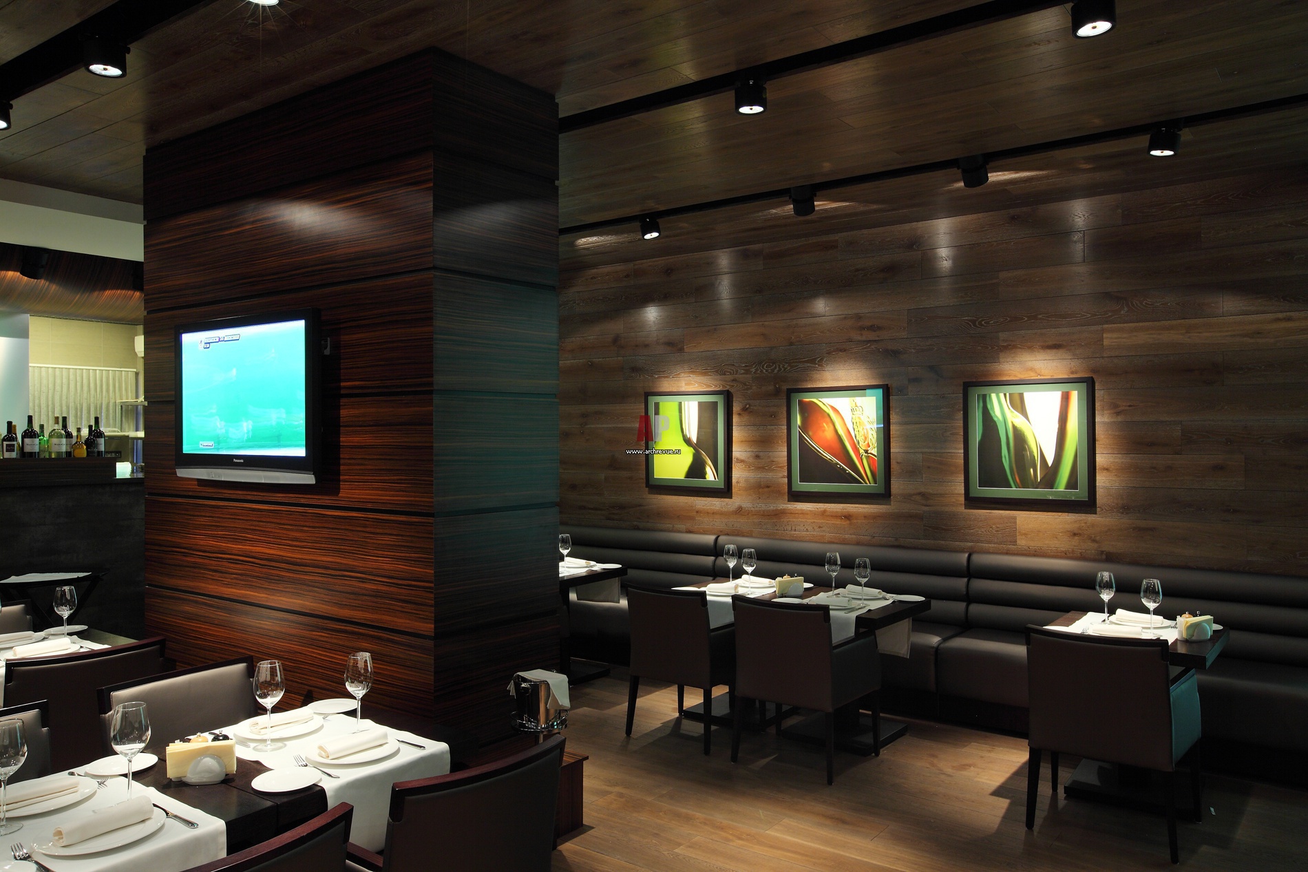 Зона лаунжа располагается за перегородкой, облицованной максаром. Диваны сделаны на заказ по эскизам архитекторов на производстве Beni.