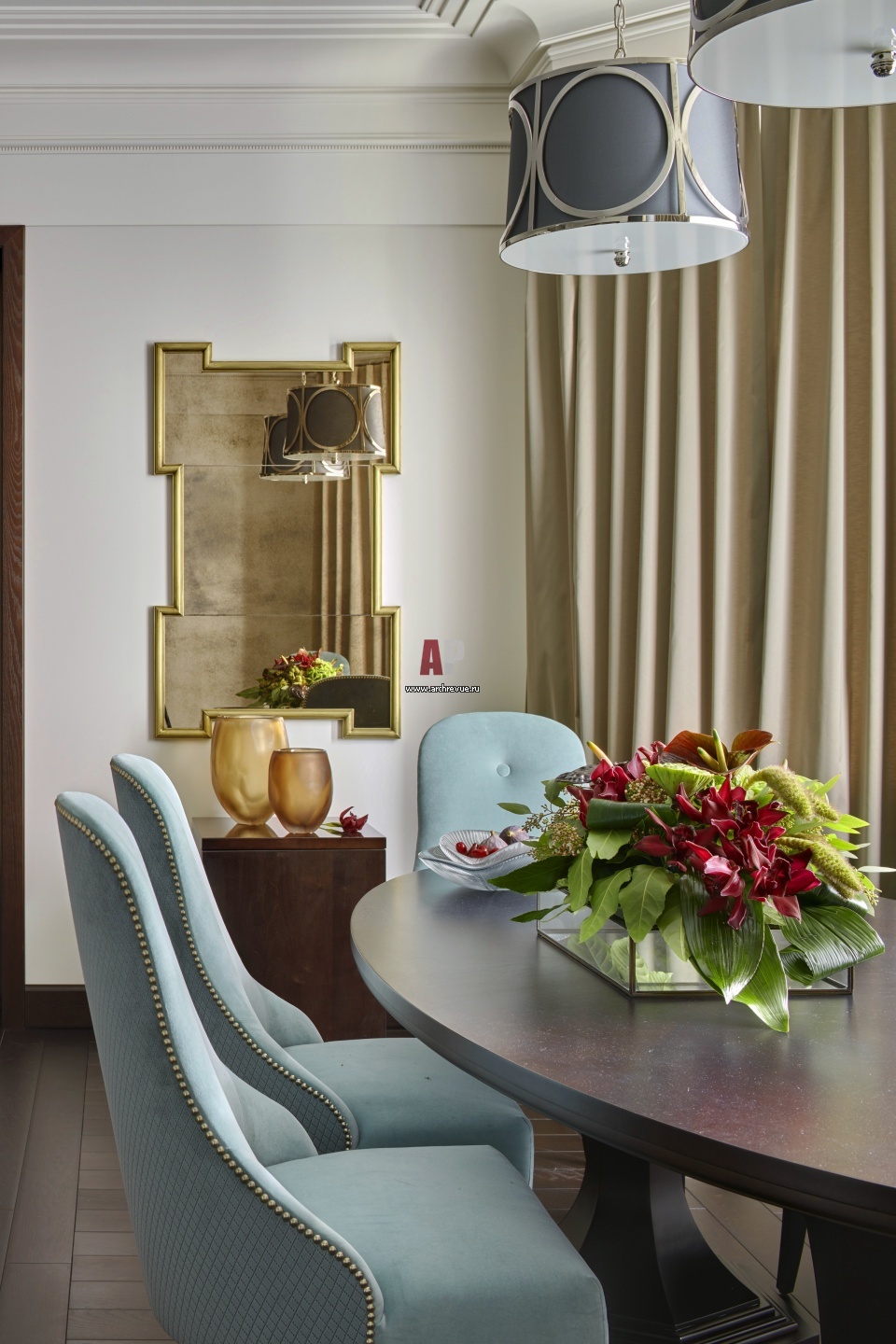 Обеденная зона в эркере. Обеденный стол, Interna Collection. Стулья, The Sofa & Chair Company. Настольные лампы, Nicholas Haslam.