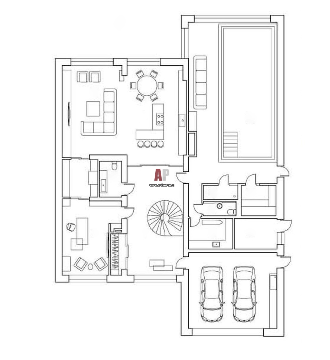 Планировка 1 этажа 2-х этажного современного дома, 600 кв. м.