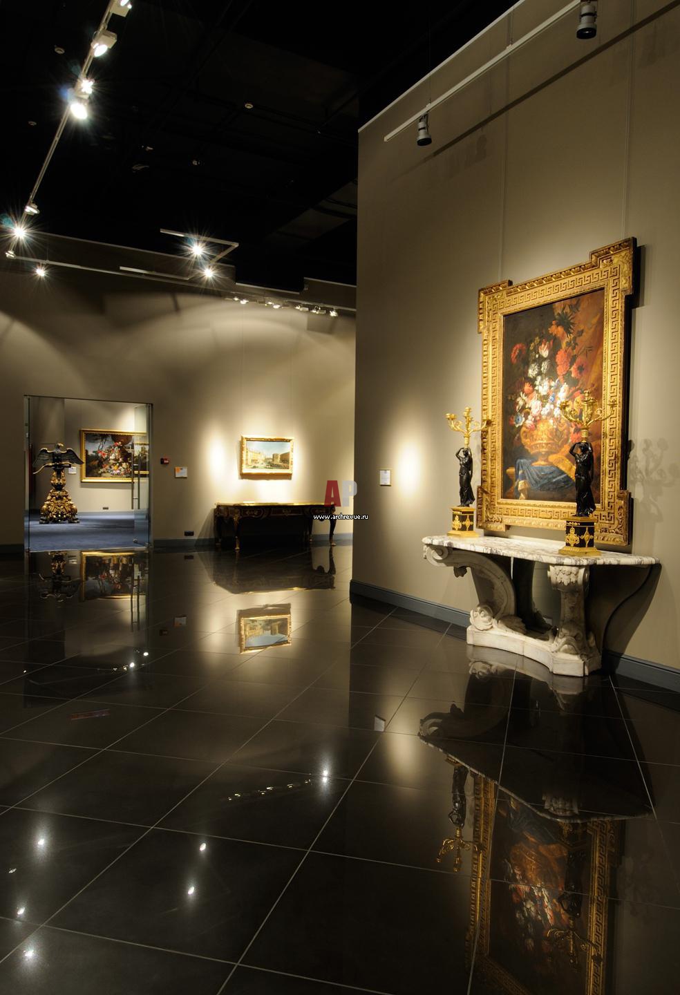 Организуя пространство, авторы создают круговую композицию - лабиринт с эффектными видовыми точками, откуда просматриваются другие залы.