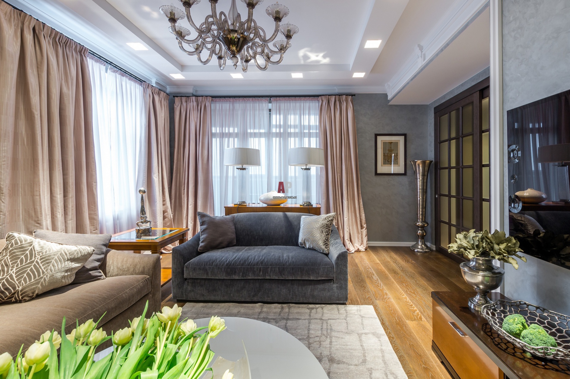 Фото интерьера гостиной квартиры в стиле неоклассика