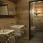 Первый этаж дома в стиле эклектика решен как свободное пространство. На полах – «седая» паркетная доска, поставщик «Модная плитка». Стены частично облицованы фасадным камнем – пиленым известняком.