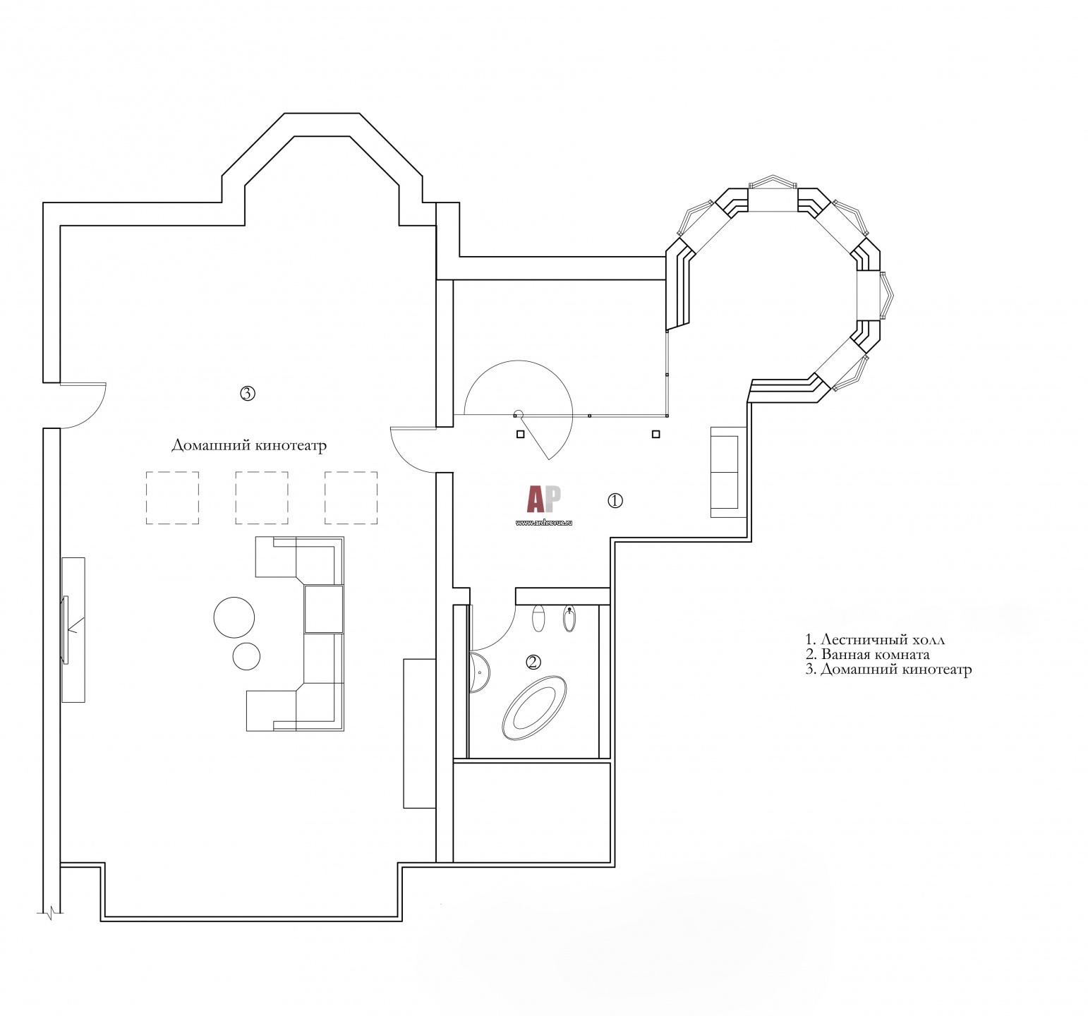 Планировка мансарды 3-х этажного дома для большой семьи.