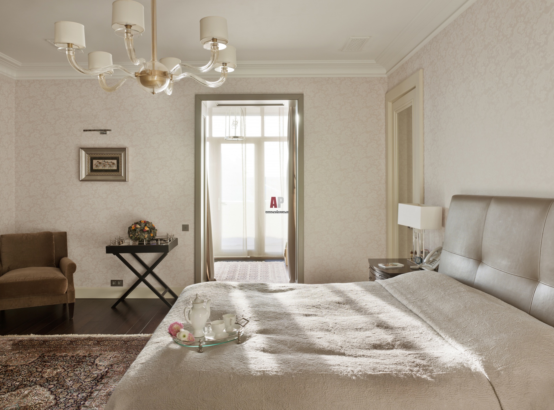 Интерьер спальни. Текстильные обои в приватных помещениях придают им индивидуальность.