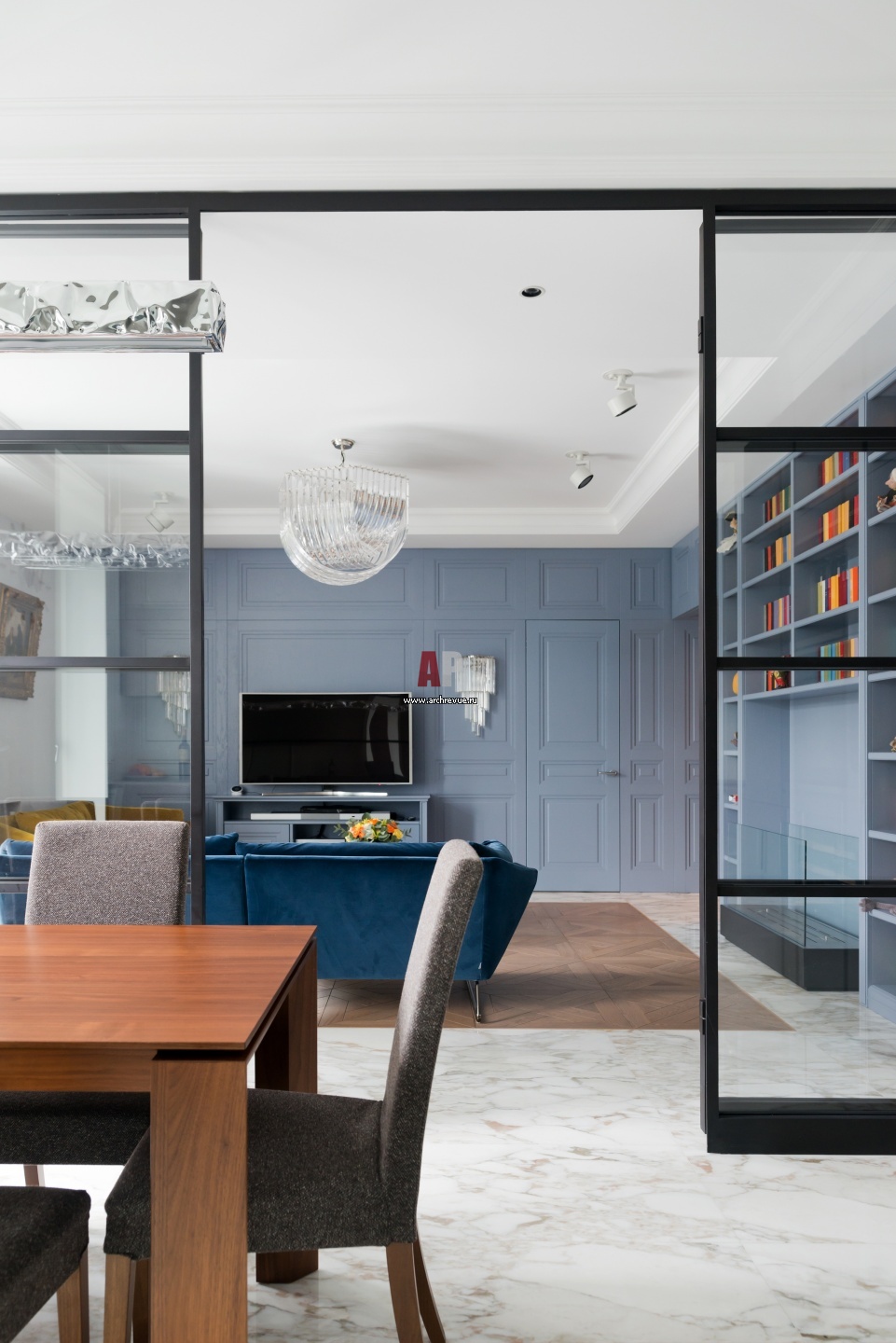 Помимо декоративных светильников в квартире установлено профессиональное техническое освещение, позволяющее создавать различные световые сценарии. В их числе поворотные прожекторы, Erco.