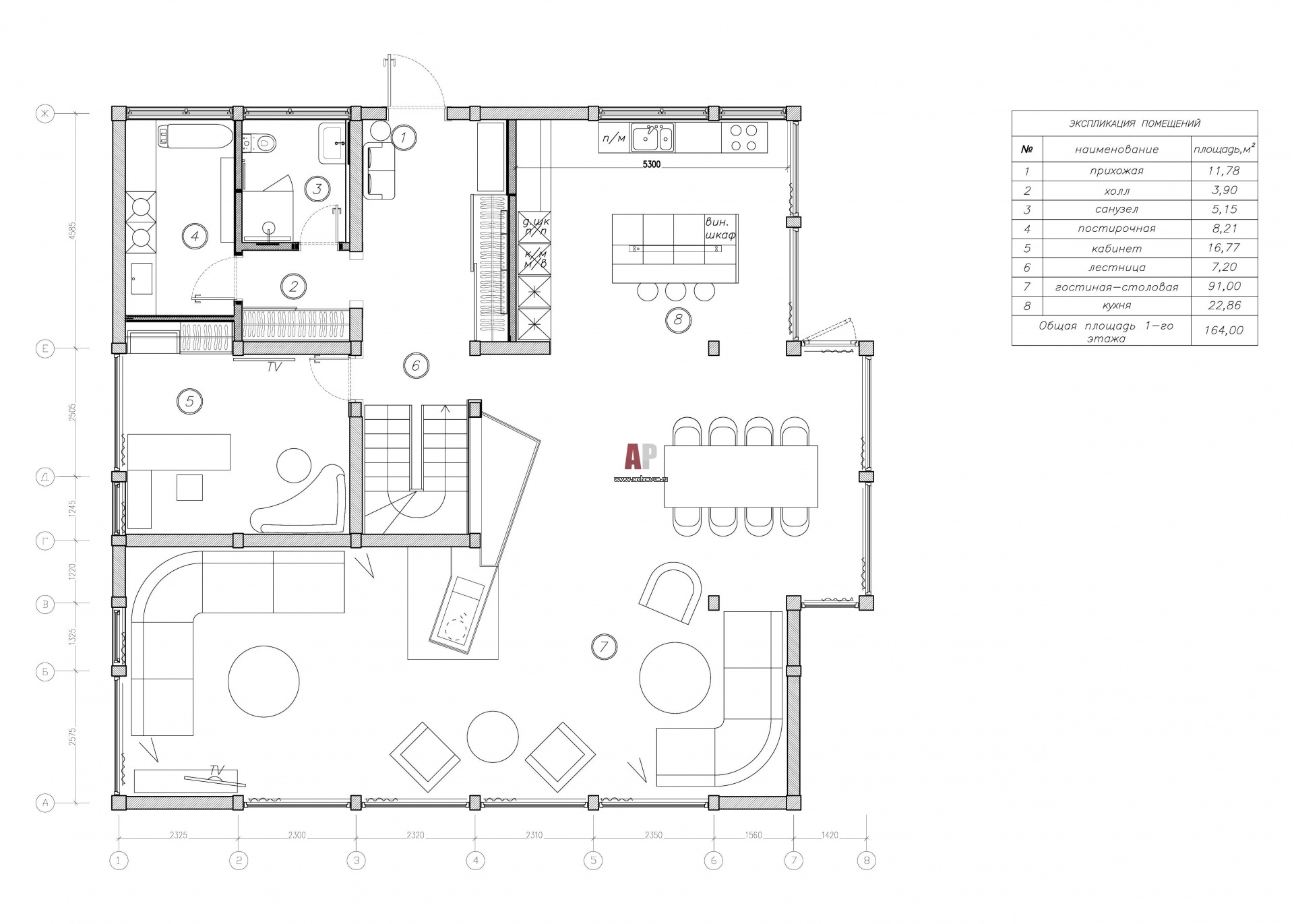 Планировка первого этажа деревянного дома в стиле фьюжн в Репино.
