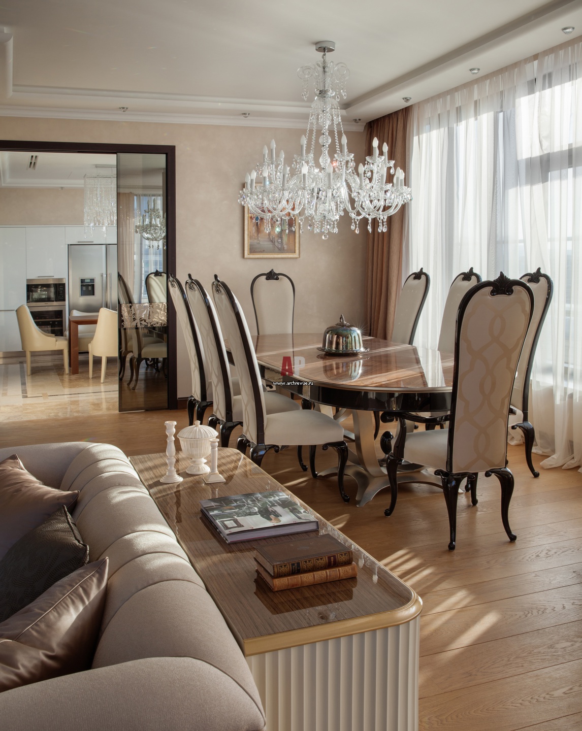 Стены в гостиной, кухне и прихожей выкрашены декоративной штукатуркой одного оттенка, но из-за разной освещенности выглядят по-разному. Чтобы найти единственно верный оттенок стен, было сделано около 30 разных выкрасов.