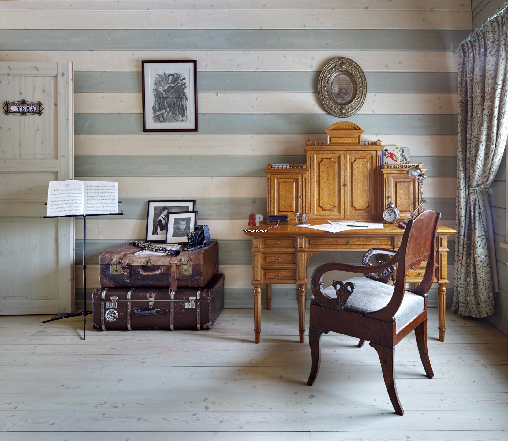 Интерьер рабочей зоны в детской. Бюро из шпона клена «птичий глаз», современная реплика кабинета конца XIX века.