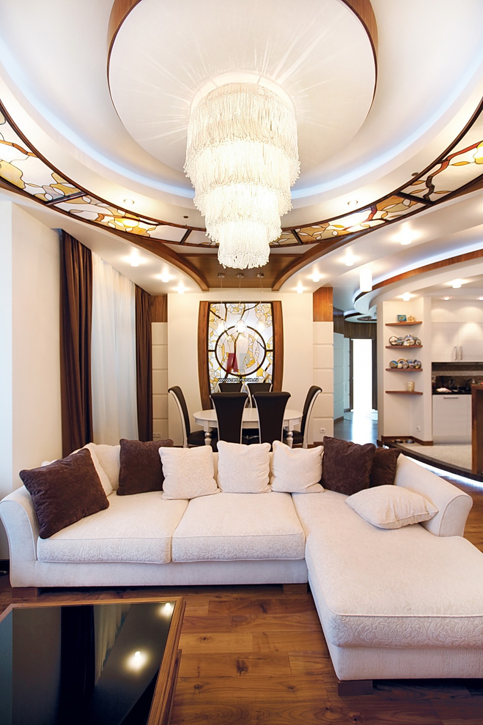 Вид из гостиной на столовую. Мебель в стиле ар-деко.