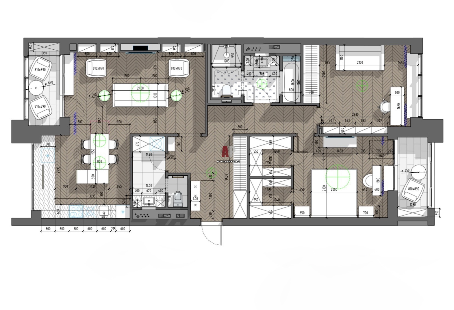 Планировка 3-х комнатной квартиры для семьи с дочерью-подростком в новостройке премиум-класса.