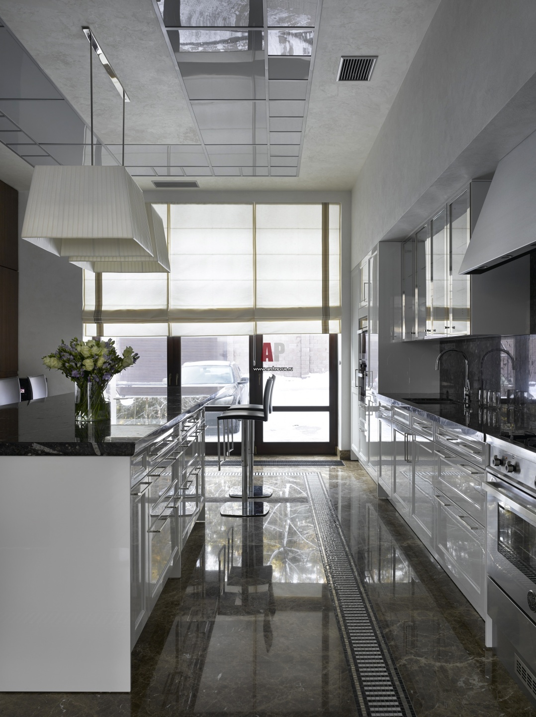 Благодаря панорамному окну кухня выглядит светлой и воздушной. Кухонный гарнитур, SieMatic. Светильник, JNL.