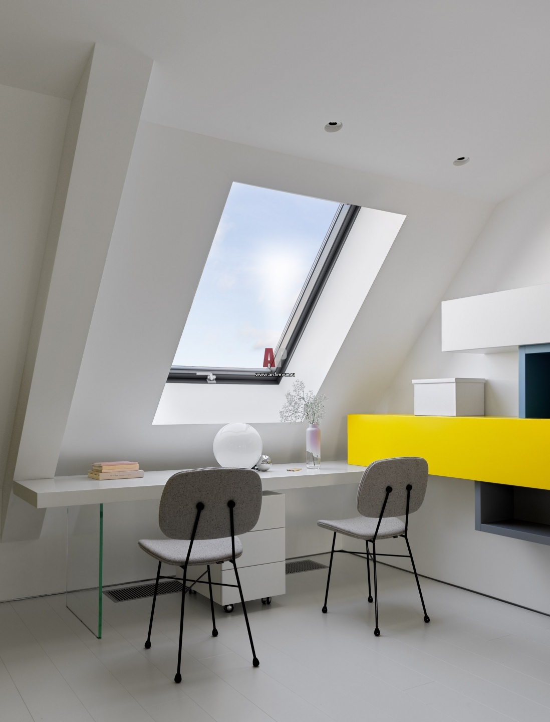 Рабочая зона в детской. Мансардное окно, VELUX. Стулья, MOOOI.