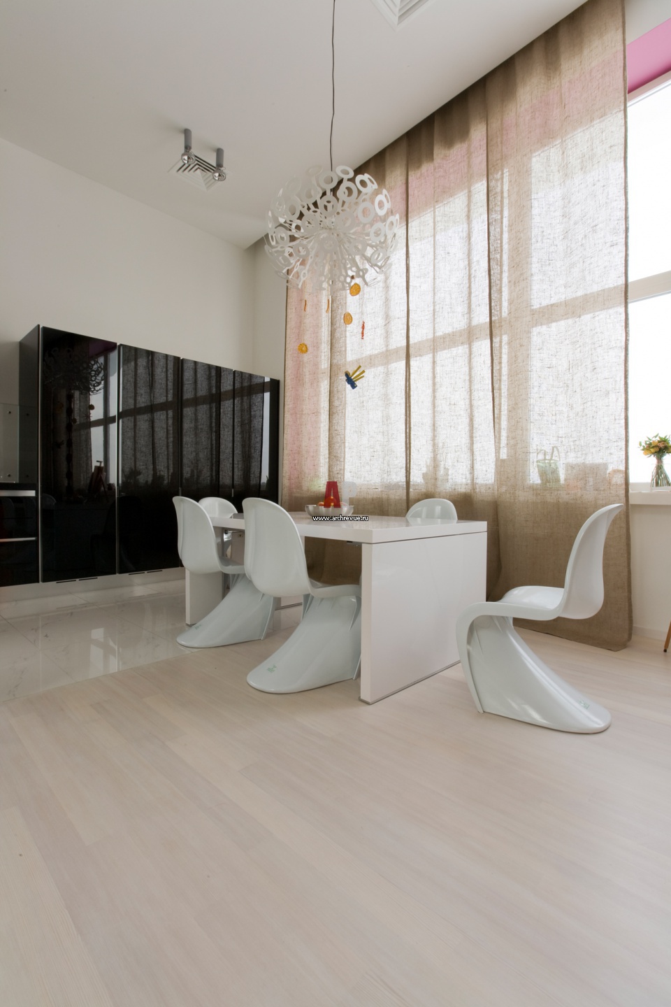 Зона столовой в общем гостевом пространстве верхнего уровня. Авторы проекта Петр Зайцев, Арсений Борисенко, архитектурное бюро za bor. Столовая группа, Ligne Roset.