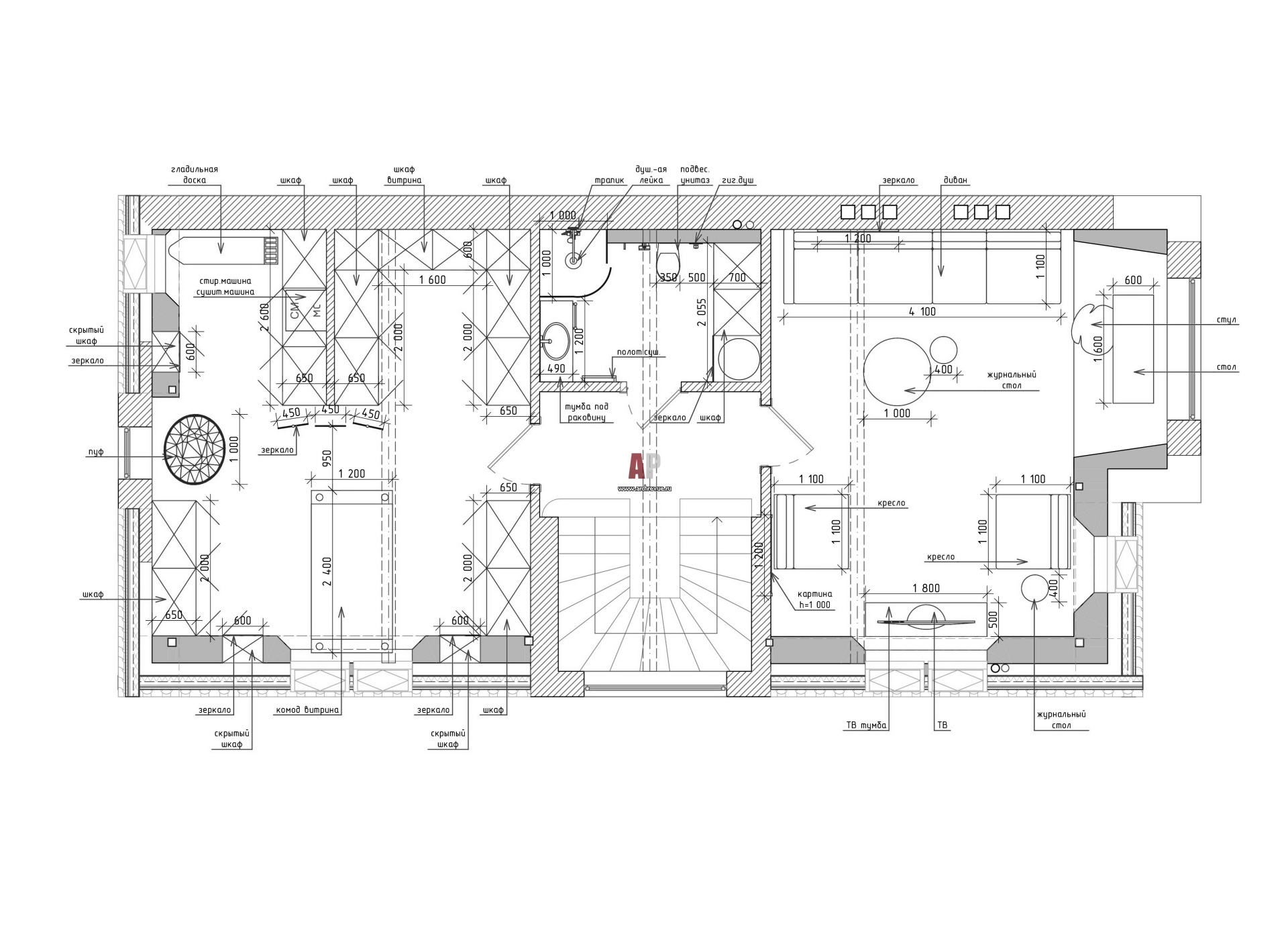 План третьего этажа трехэтажного таунхауса в Калининграде. Общая площадь – 350 кв. м.