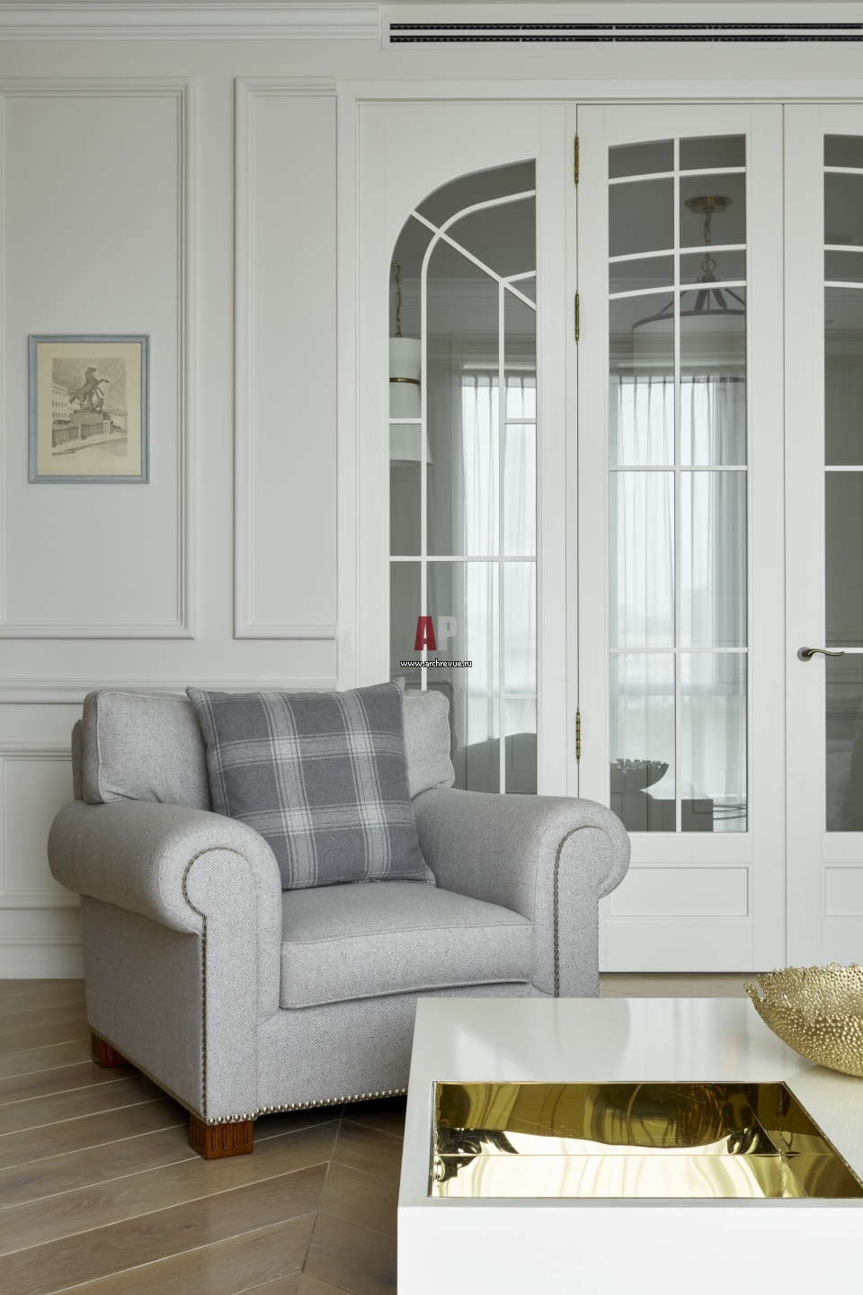 Квартира для молодого человека в доме на Мосфильмовской с деталями в стиле неоклассика и конструктивизм